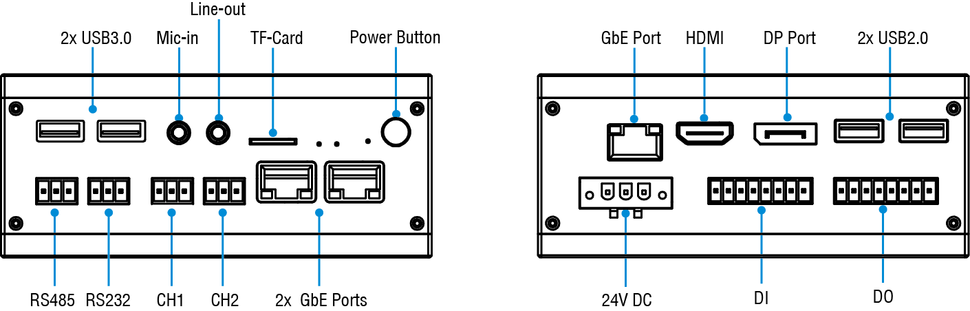 2 x USB 3.0,2 x USB 2.0,1 x RS232,1 x RS485,2 x Light source control,4DIO